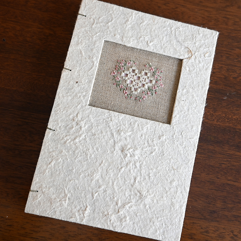 makes a beautiful handbound book that can be filled with many different types of paper. It features decorative stitching along the spine that adds interest to an already beautiful book.