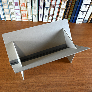 A book cradle makes all your stitched-spine binding projects so much more fun, fast - and accurate! This cradle works with books with up to 9" spines, assembles easily and folds flat for storage and travel. And it's economical to make!
