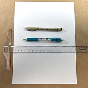 No special supplies are required besides paper and a mark-making tool. I’m using a Sakura 08 pigma pen and some of the paper I use for Beginning Italic Calligraphy – mostly because it’s handy!