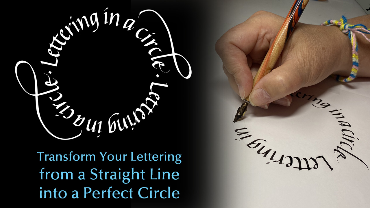 In this class we’re going to take a line of your lettering and turn it into a complete full circle so it fits perfectly. When finished you can turn this into a card, create a frame for a photo, use it in a wedding invitation or announcement, or even have a rubberstamp made from your finished artwork.